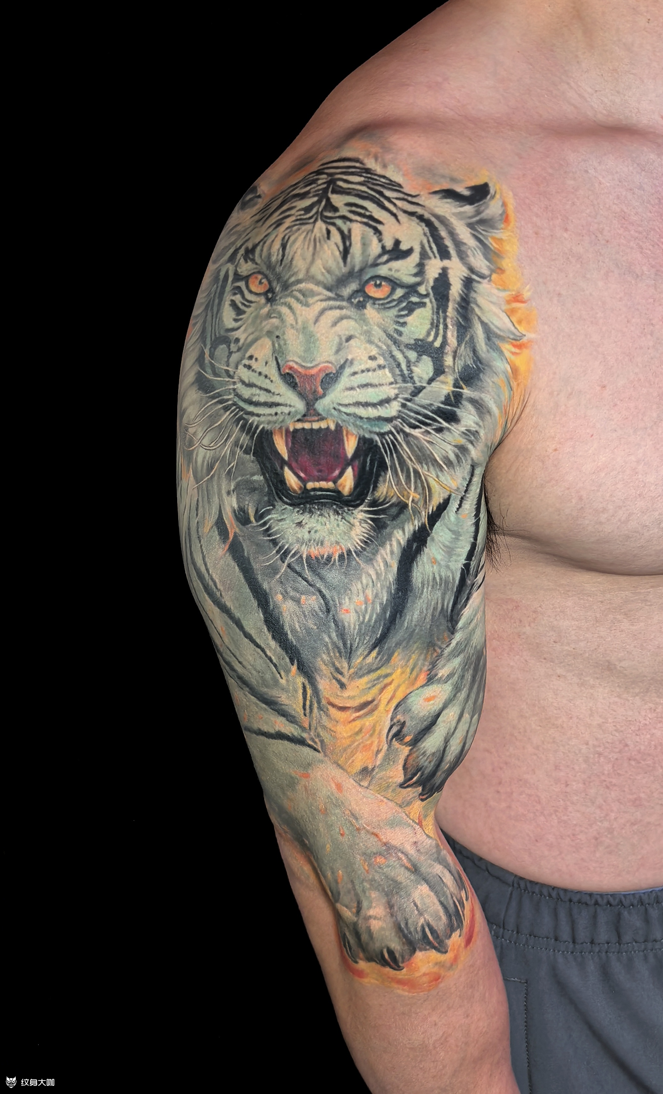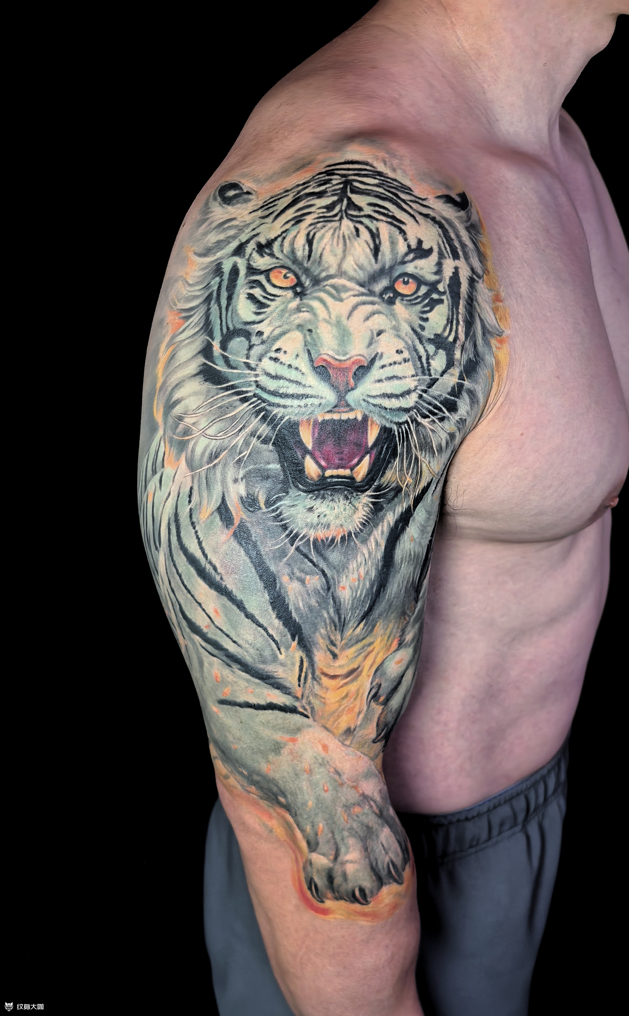 白虎纹身 动物纹身 顾客对纹身的要求也是比较高的,他一再给我说皮肤是最珍贵的,钱还可以再挣,让我也倍感压力, 当然这就是对纹身师的激励、鞭策~