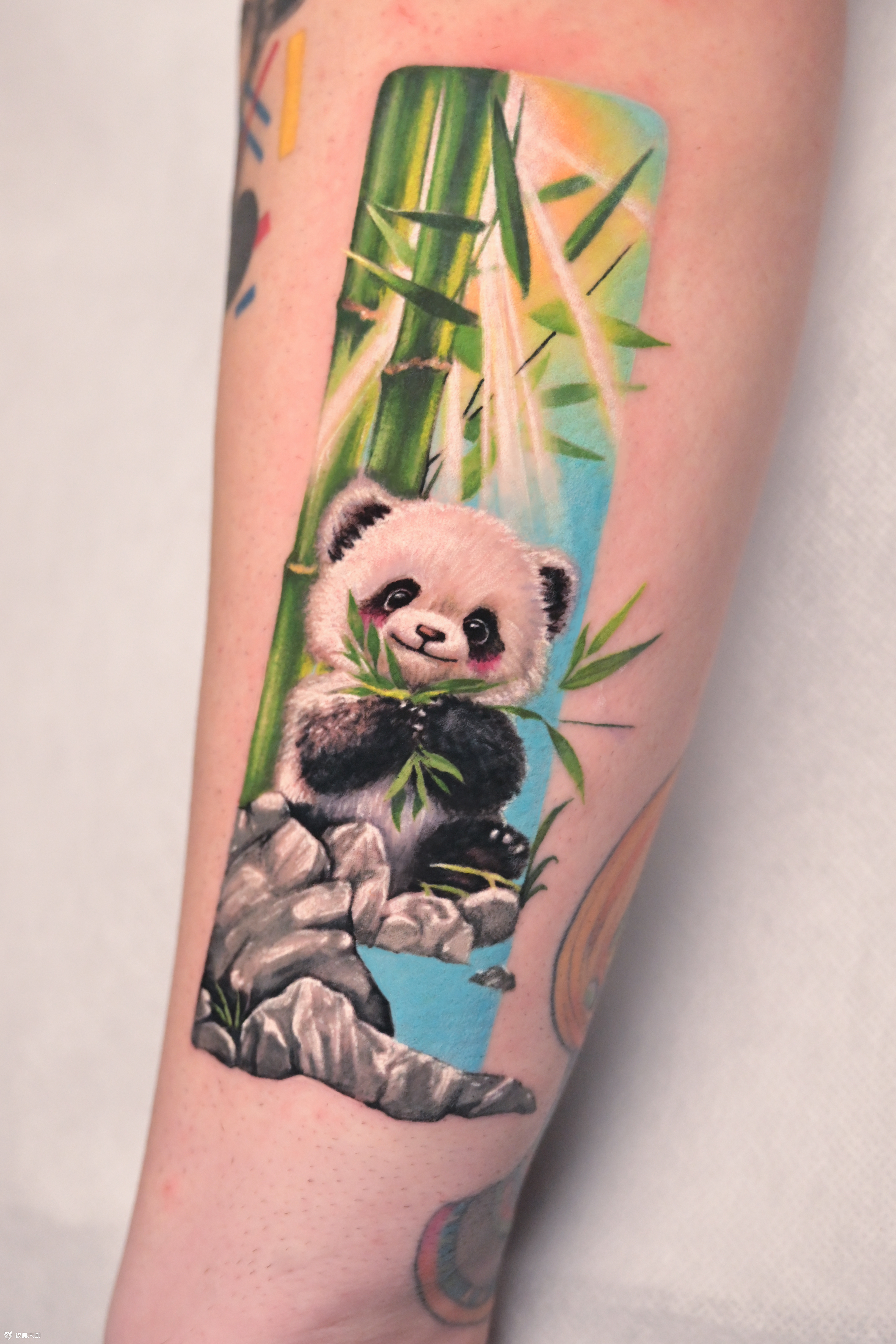 写实遮盖龙与般若 十月份法国依云展会现场遮盖作品,这应该是我目前最喜欢的遮盖作品,ig给我发照片的时候我都蒙了,整个大臂外侧前胸后肩胛骨都有满满的黑色图腾,想要用龙和般若去全部遮盖掉,面积较大位置角度过多不平整,皮肤留白面积不多,整体难度是比较大的.设计图做了两稿最终选择的这一稿,因为是遮盖需要严丝合缝尽量利用原文身的留白区域所以我选择了全程手绘代替转印,展会现场展位围的水泄不通,也给法国纹身师展示下中国技术。