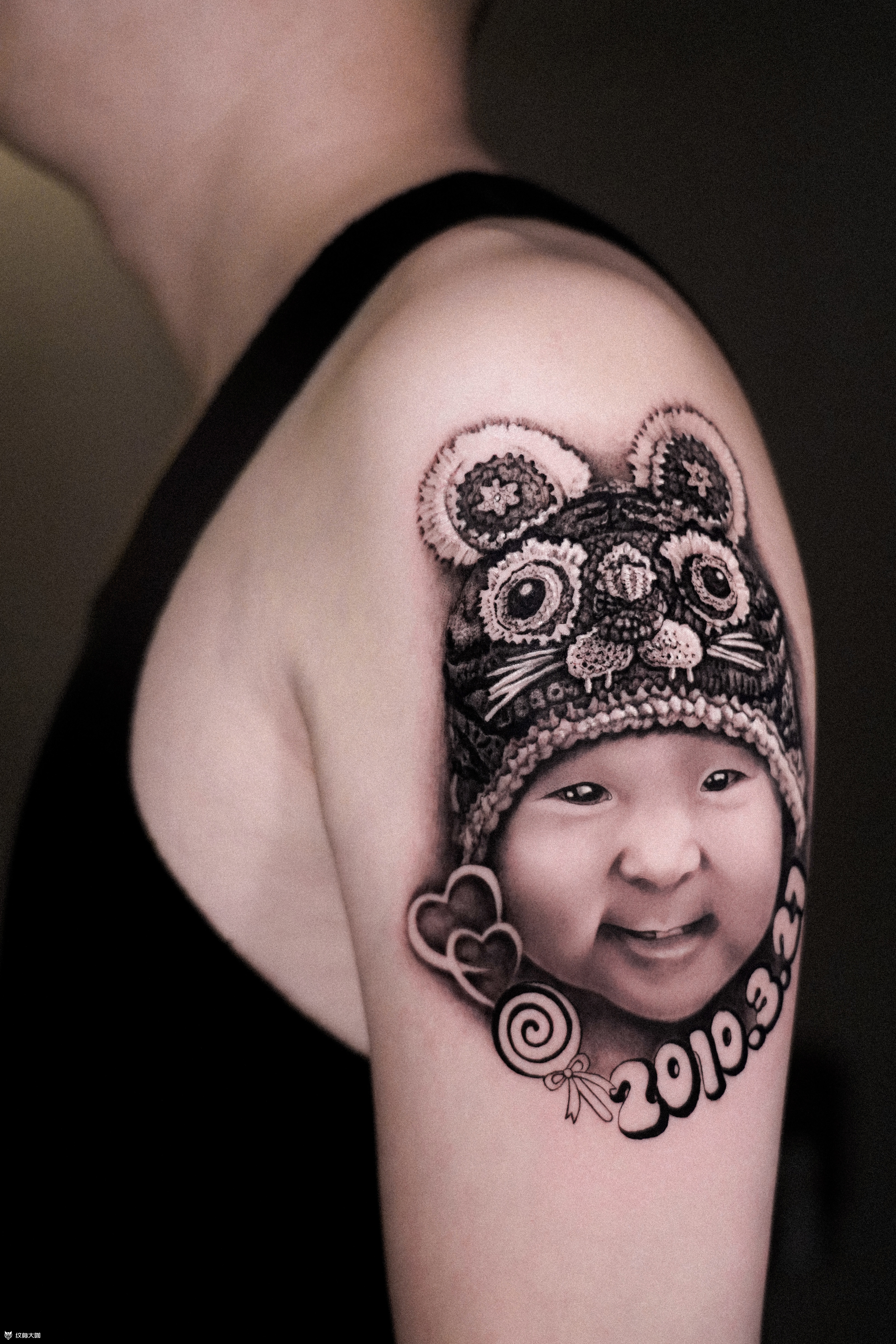 女儿肖像 给属虎的女儿戴上虎头帽