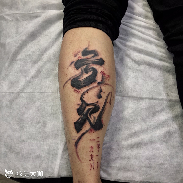 顾客本想纹一个字,但觉得很单调,只有现画现纹了,最后创作出来,顾客很满意。