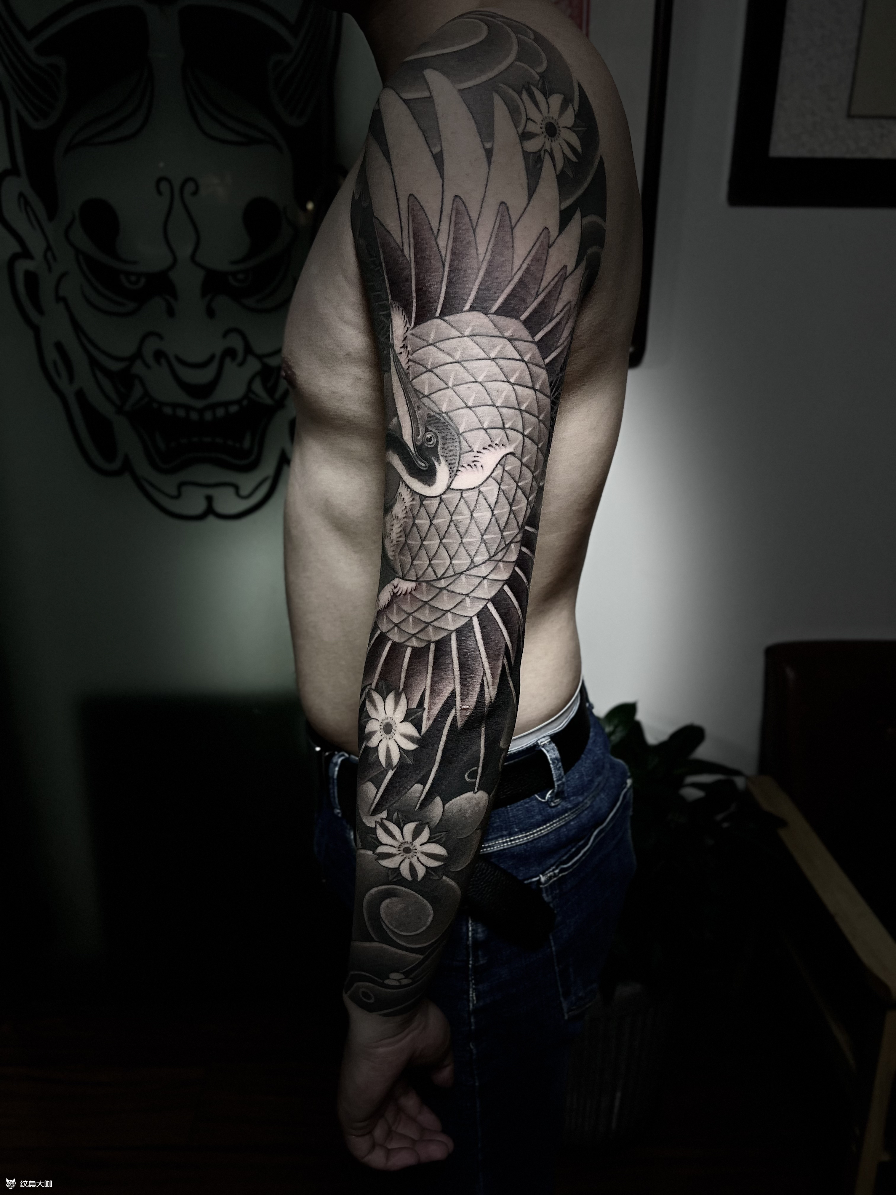 下一篇: 鹤语 《鹤语》 花臂落墨,藏了满臂的东方情怀,把天地意趣裹进皮肤里。圆月悬于云间照山河,仙鹤衔吉意踏祥云掠过亭台楼阁,九宫八卦定安康镇住四方吉气,每一笔都是对平安顺遂的期许。从此抬手见景,皆是心之所向。