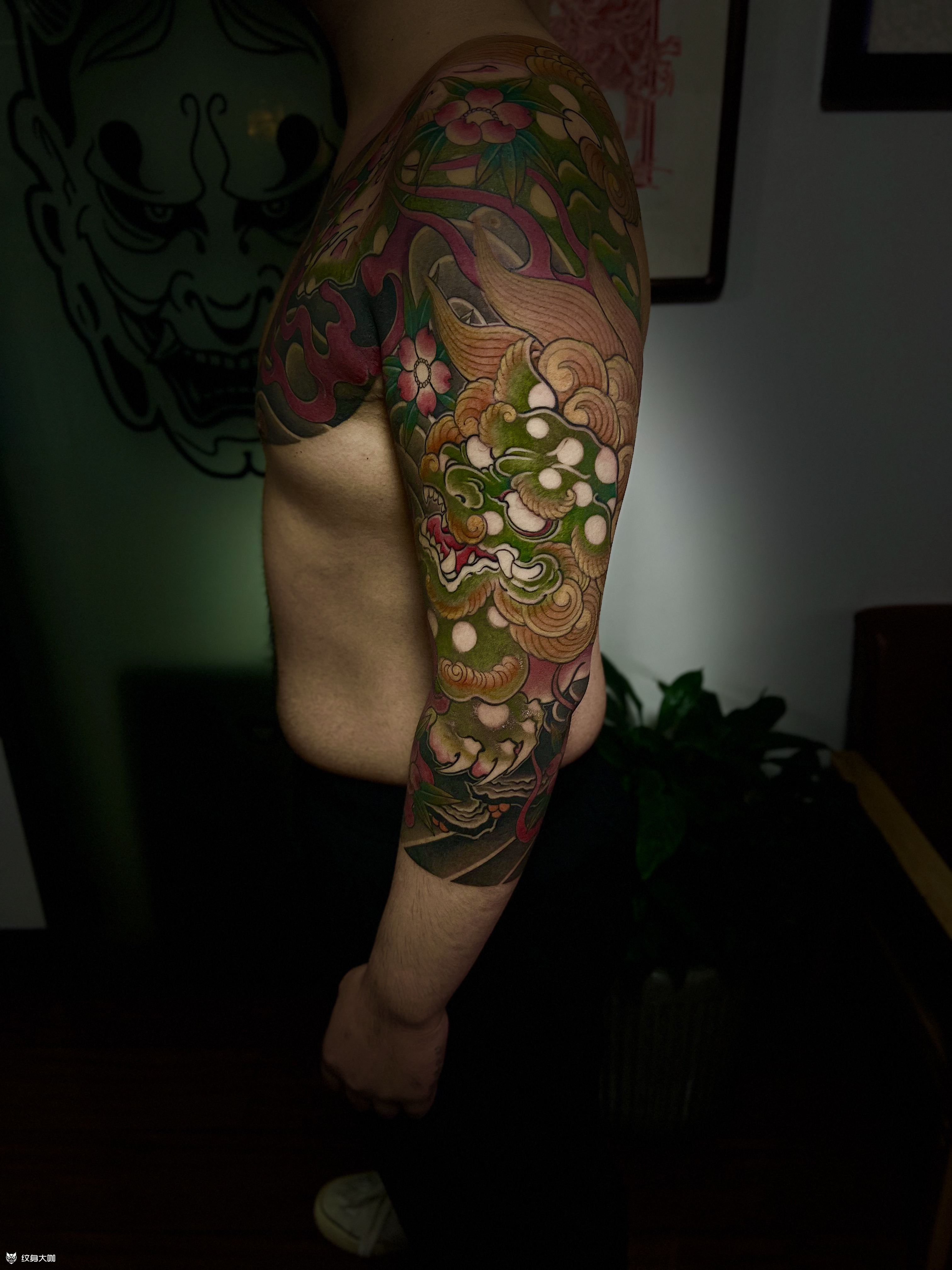下一篇: 富贵双狮 来自唐山的客人,完成了好多年前的想法,在短视频平台上看到我们,立即预约,十天完成,大腿前面设计了两个唐狮,抓着绣球,后面设计了牡丹花 机器:御神机 纹刺时长:10天
