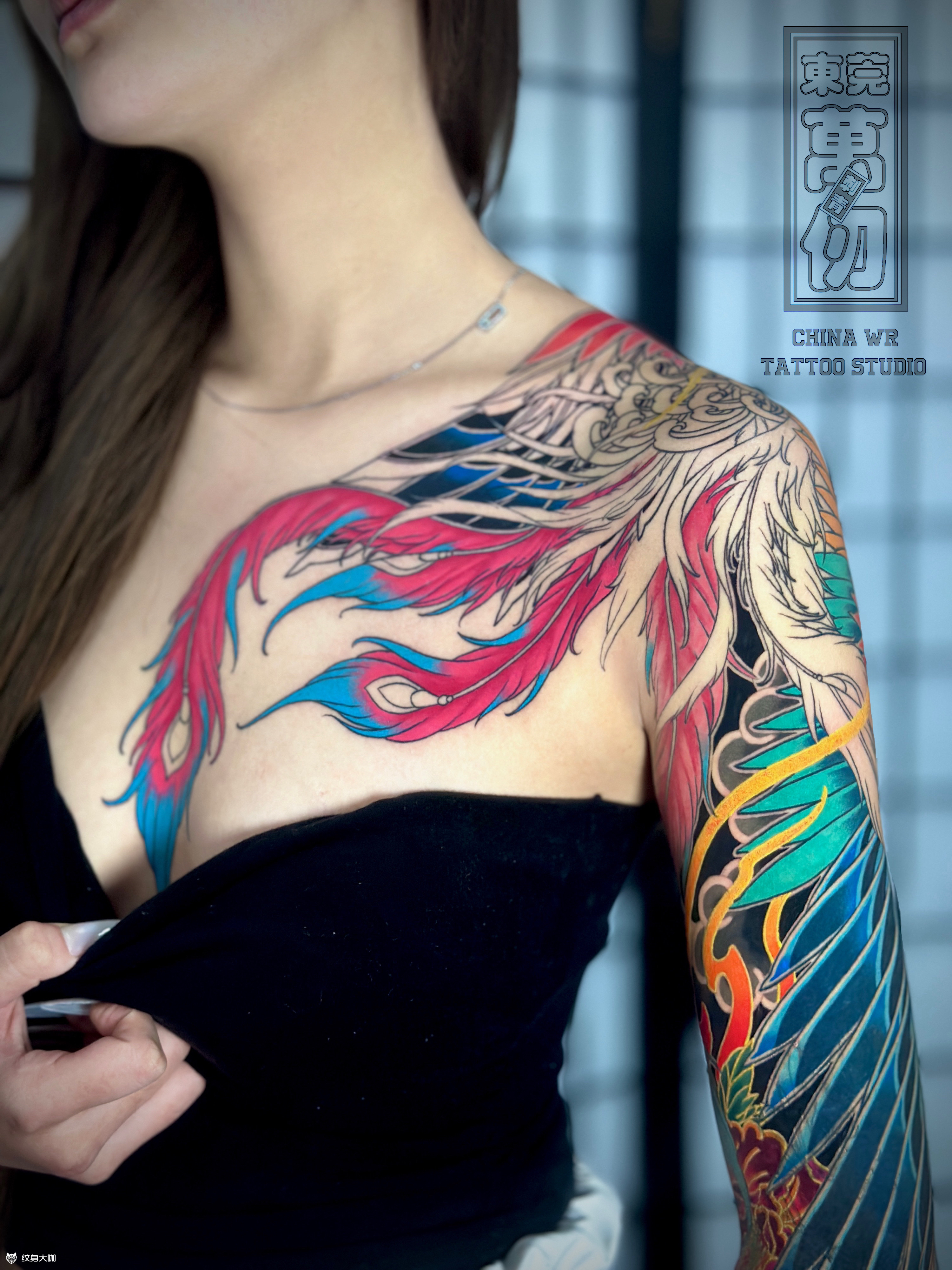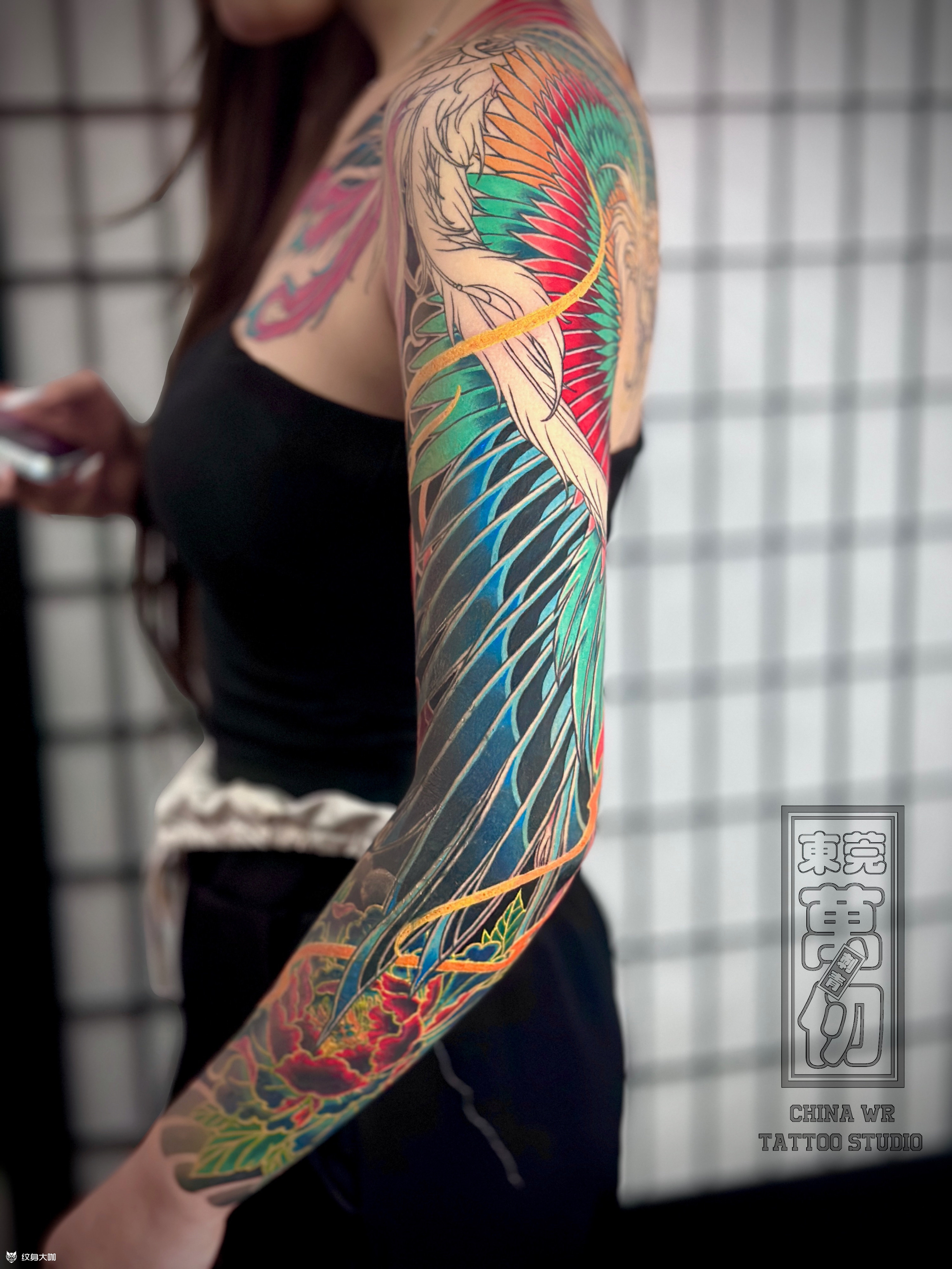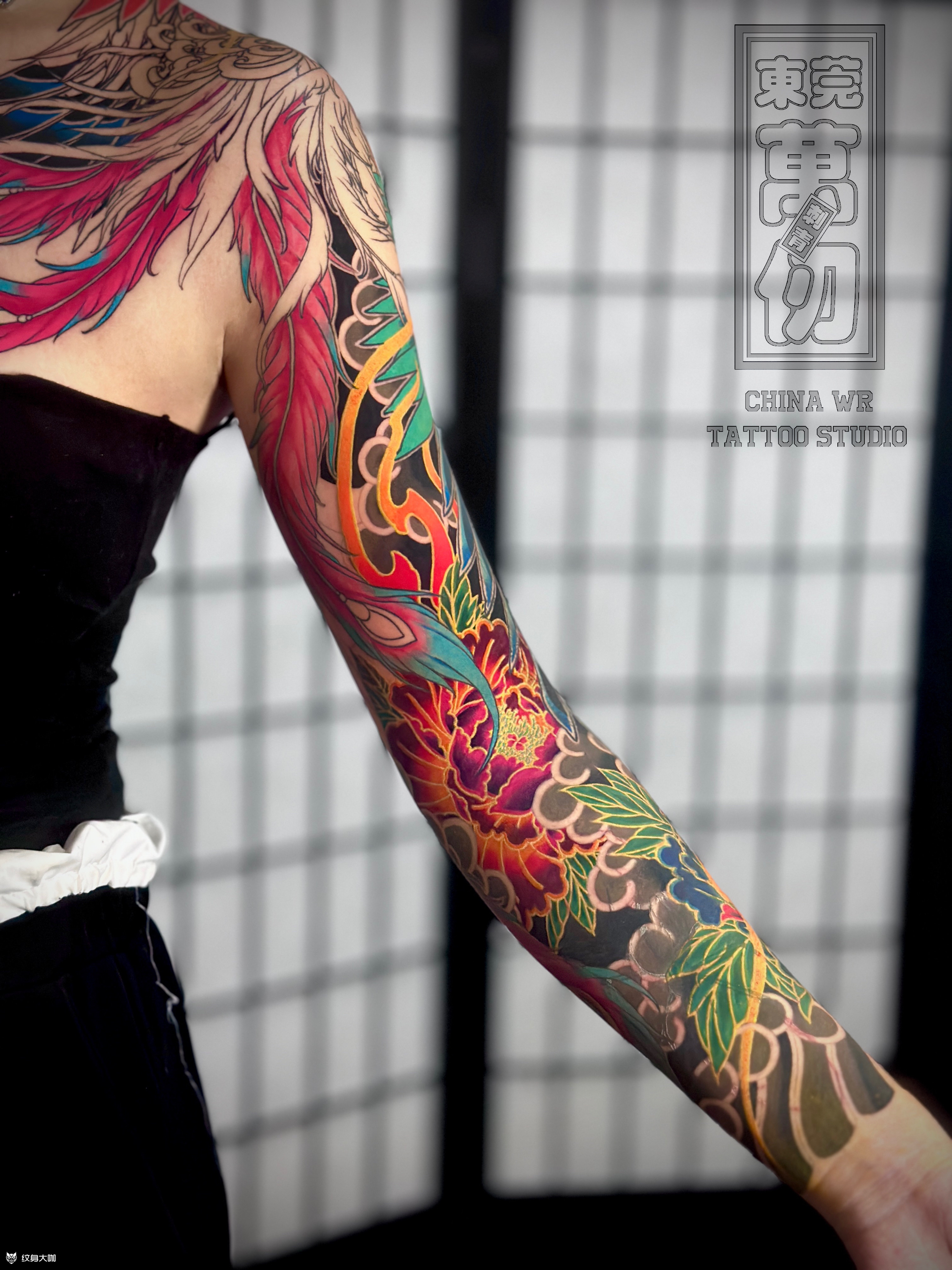 牡丹凤凰遮盖旧图花臂进度🌺 感谢湖南兄弟的介绍🙏 让这位长沙的靓女找到我们为她遮盖旧图🥰 她想做凤凰但不想做那种不好看的😛 所以我们给她独特设计了下属于她的凤凰🐦🔥 凤凰有着重生、祥瑞、高贵与和谐的寓意 象征从困境中崛起、吉祥幸福及精神不朽👍 这是做了20/h的进度未完🕐 喜欢可以定制类似的哟😉 加V:wrcq02