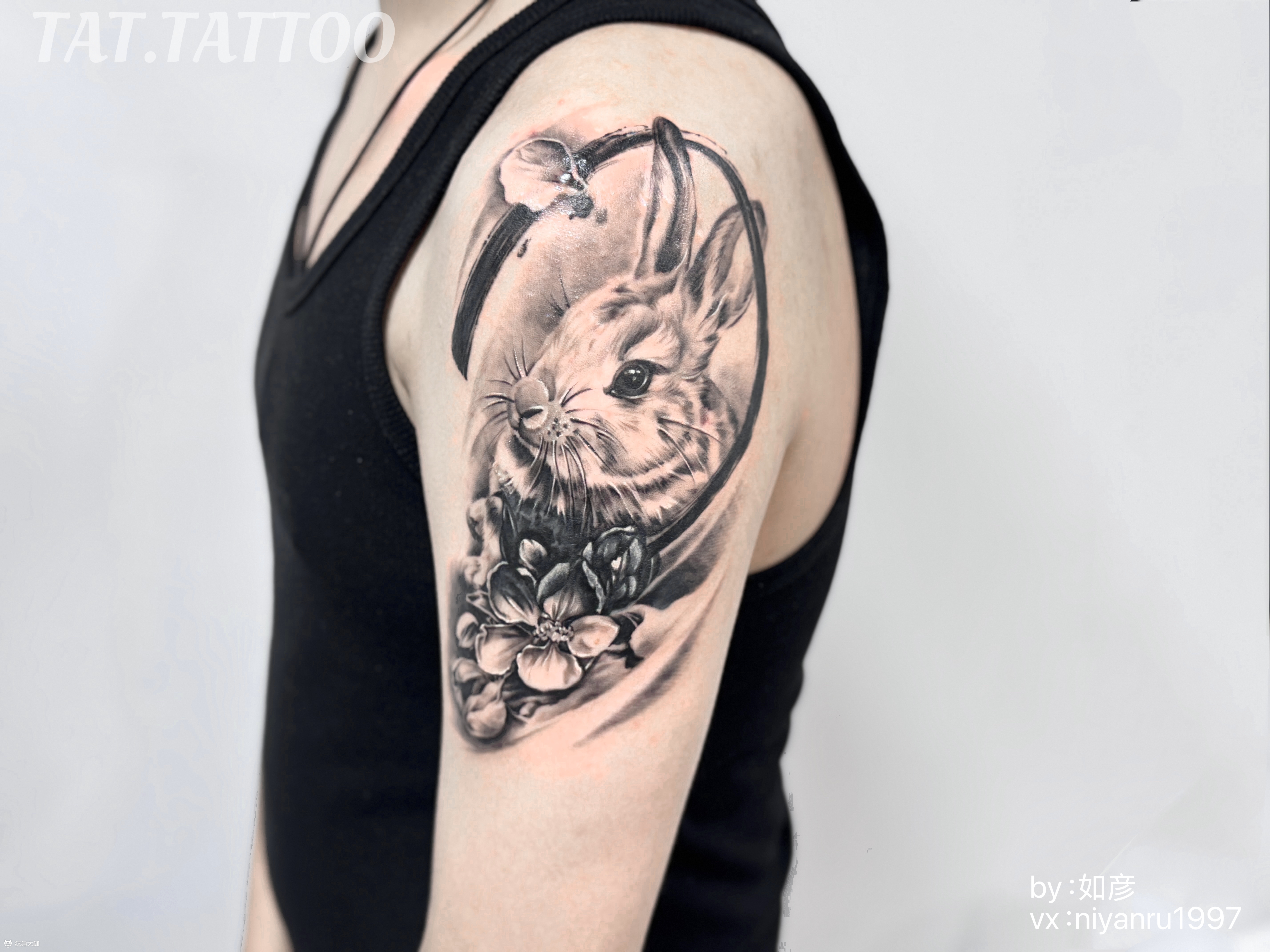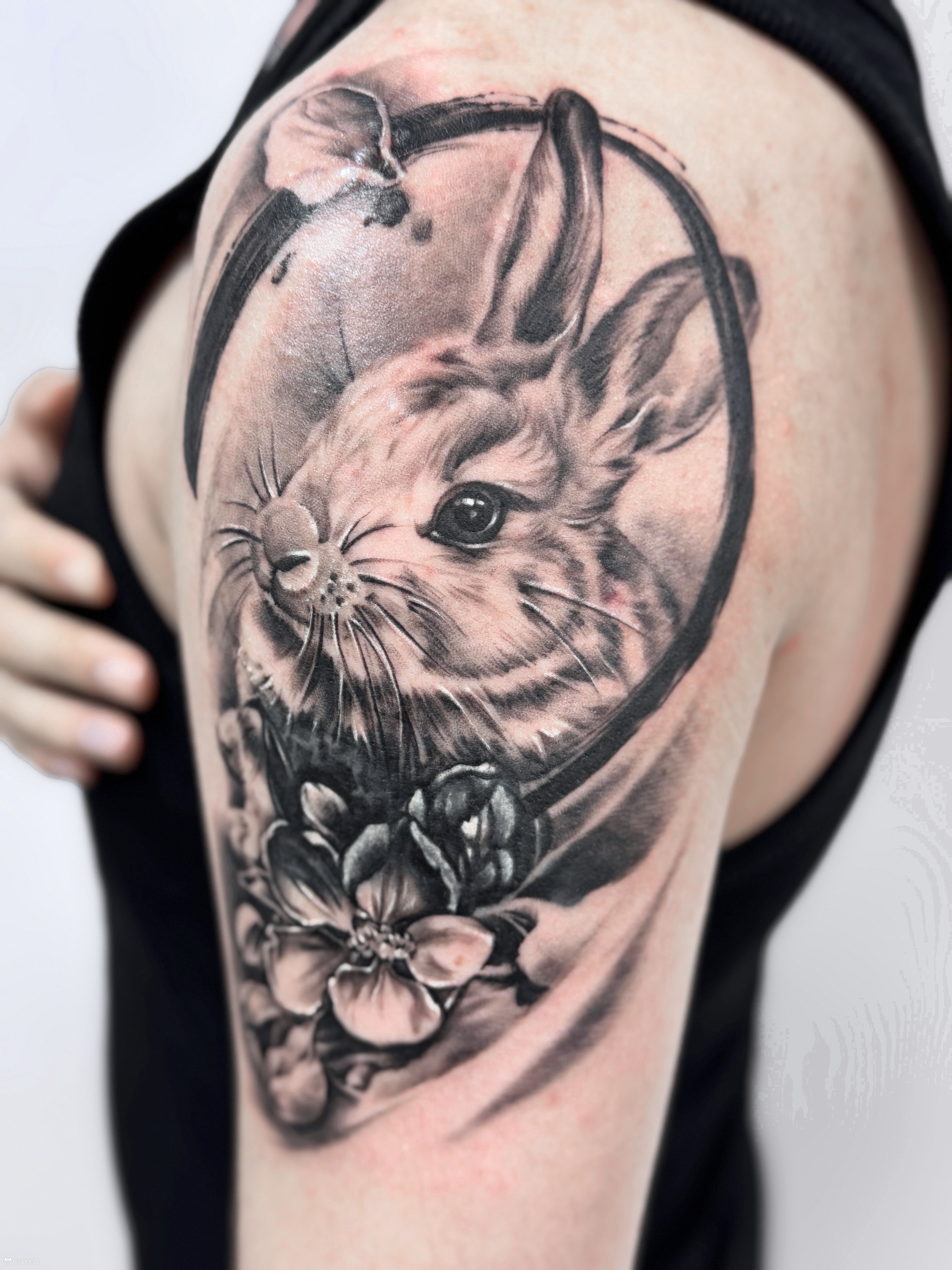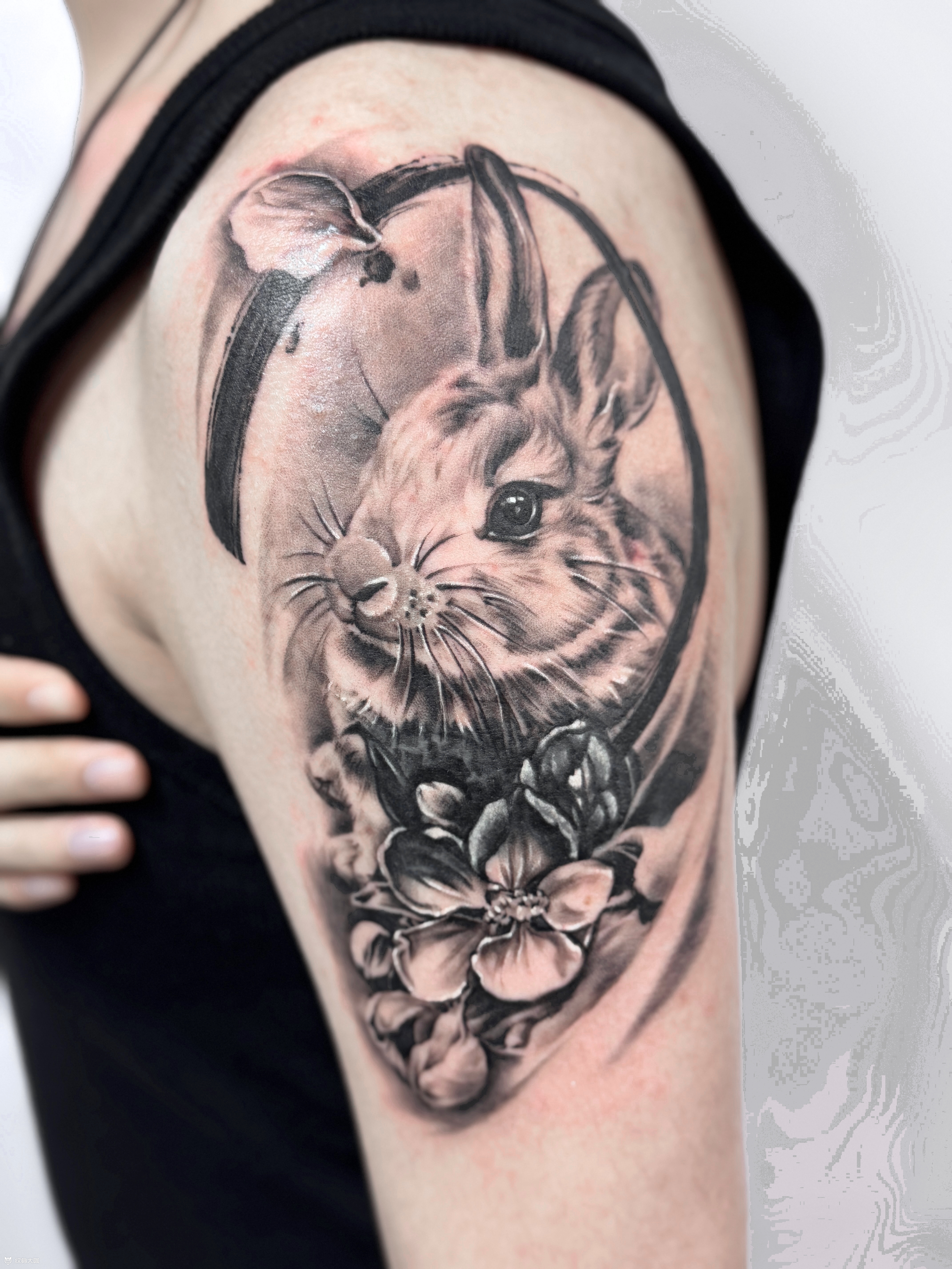 写实兔子生肖遮盖 ✍🏻客人指定生肖➕花 ▪️遮盖疤痕和巨黑的旧纹身,盖而不黑。 💚因为有底气会设计和现场灵活变通调整, 所以在我这里,遮盖, 是你们决定图,而不是图选你们!