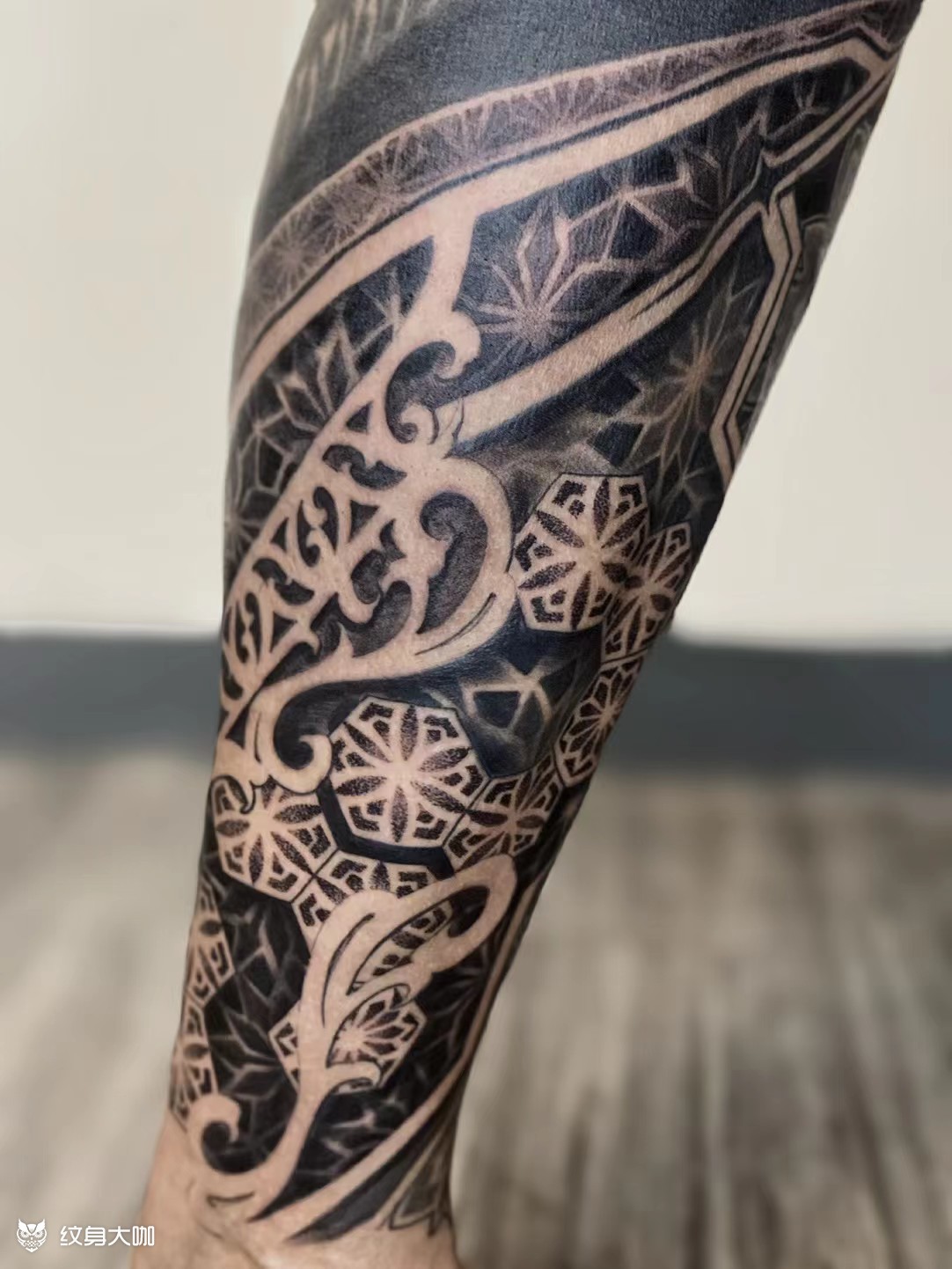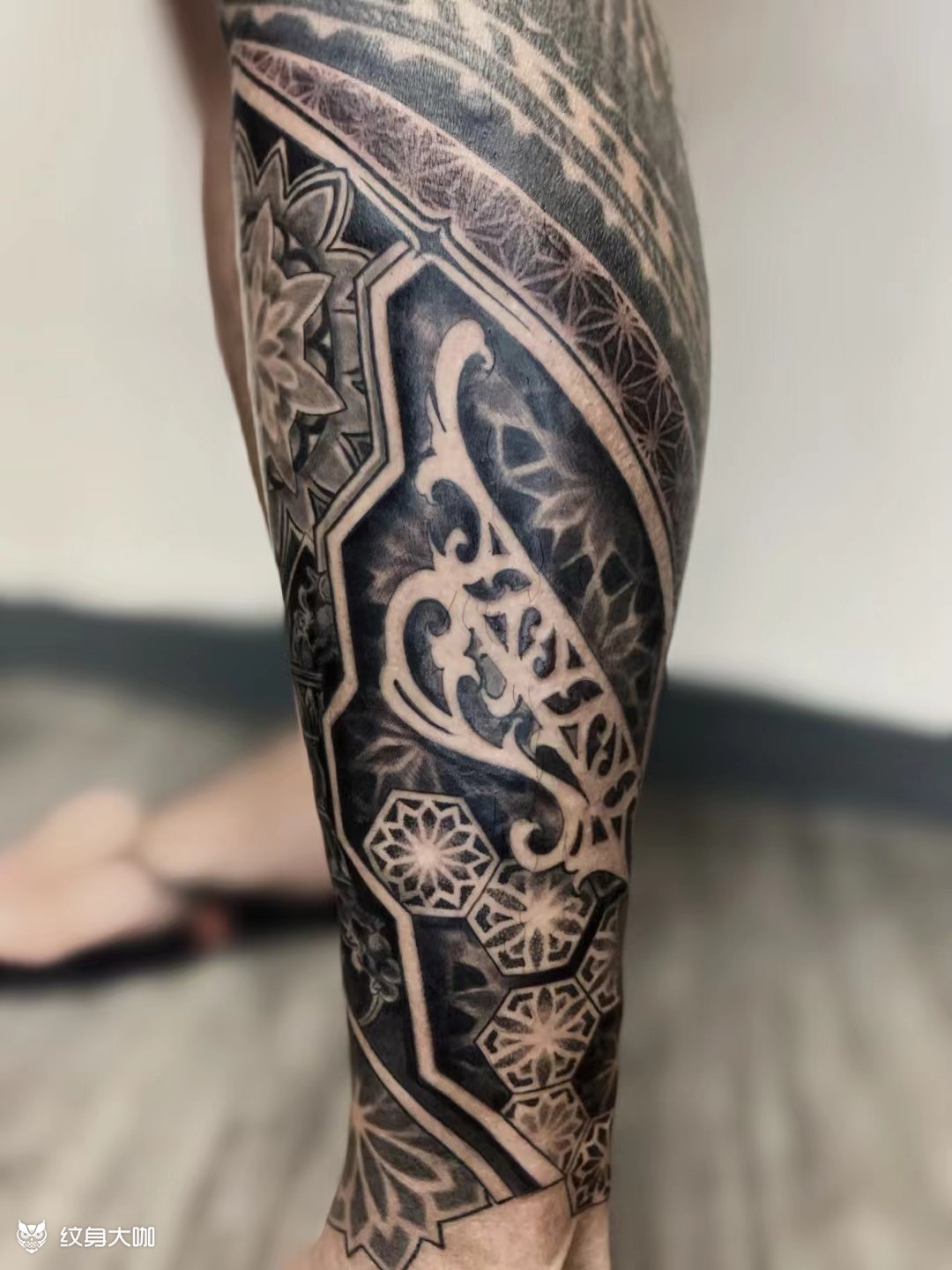 曼陀罗包小腿完!点刺点到手快废 终于通宵把这个包小腿的曼陀罗做完了。点刺真的很费功夫,下次设计还是慎重考虑点刺,真的眼睛都快点瞎了。