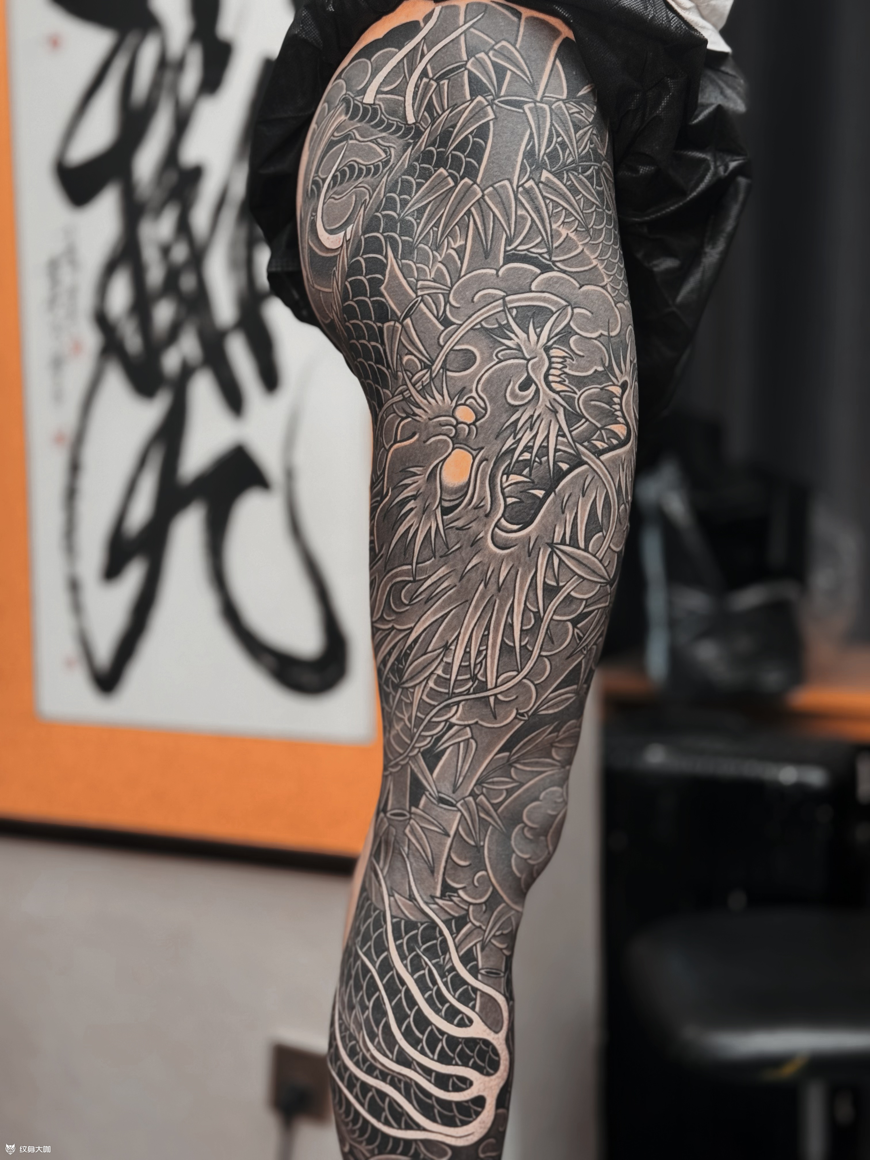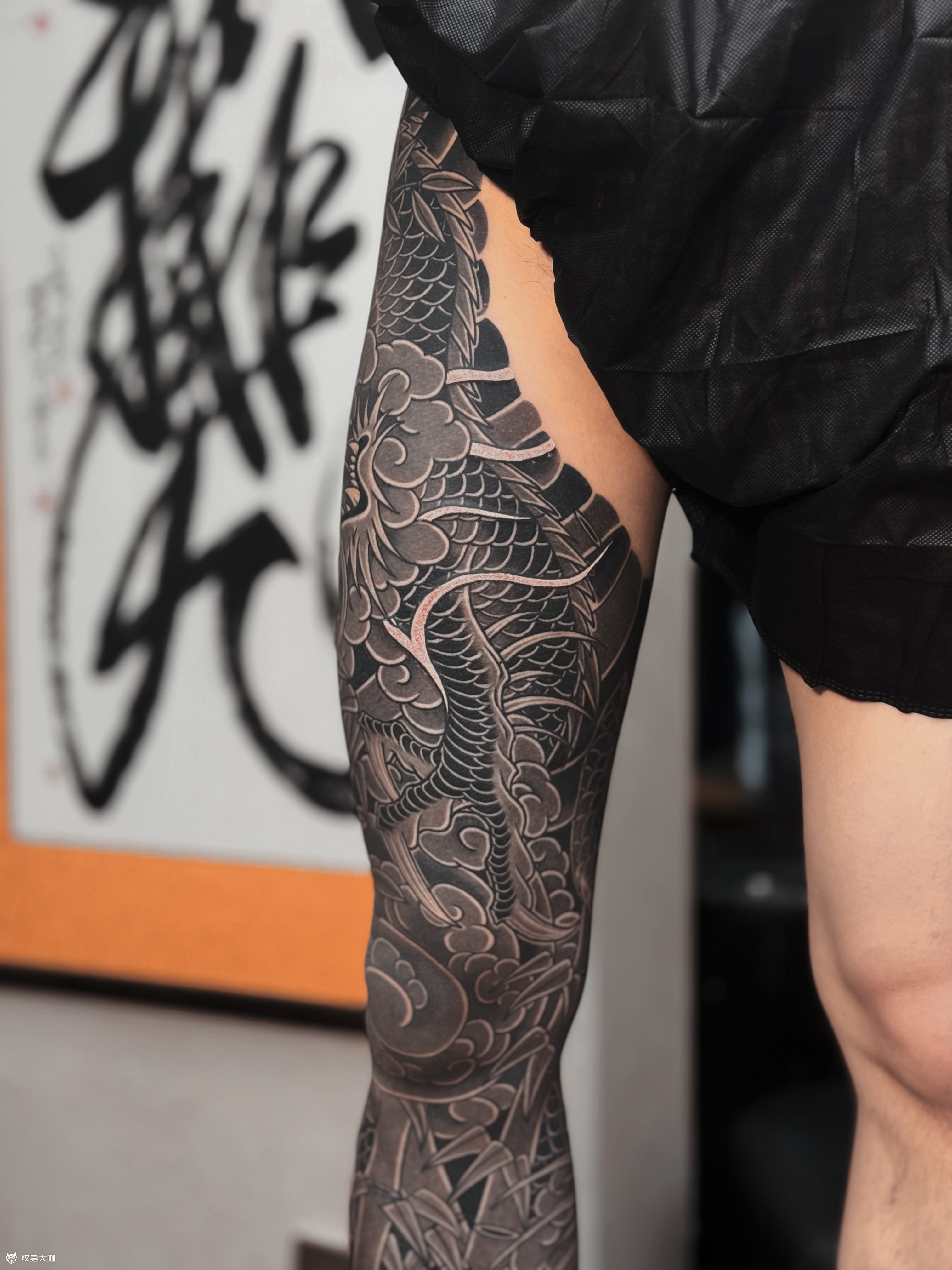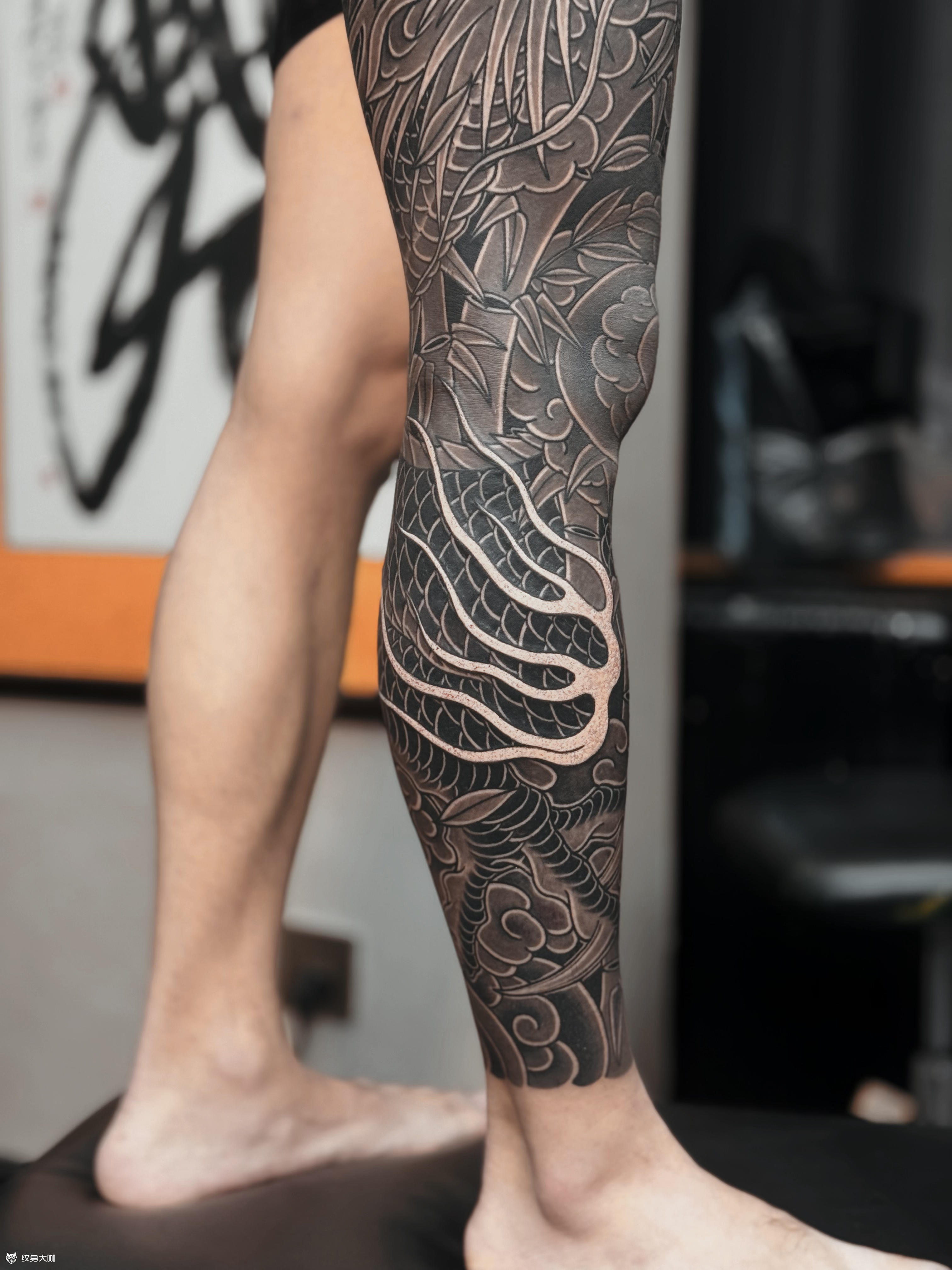 黑灰龙与墨竹花腿完🐲 感谢香港帅哥对我们的信任🙏 选择我们为他定制属于他的纯黑灰花腿🐉 帅哥想做龙与竹子那我们就设计手稿✍️ 设计出来帅哥非常满意🤣 就直接约时间过来做了😎 耗时58/h完工🕐 你们喜欢我们的设计与构图吗⁉️ 喜欢可以定制类似的哟😉 加V:wrcq02
