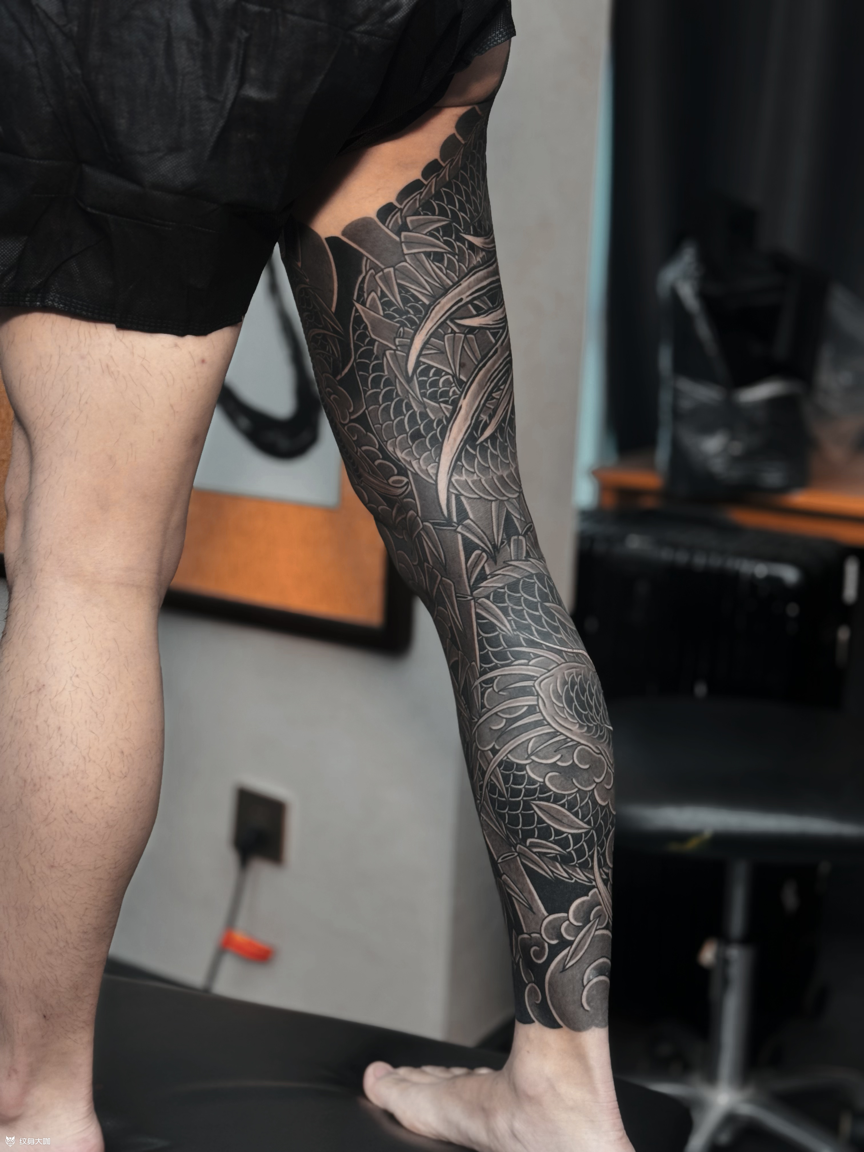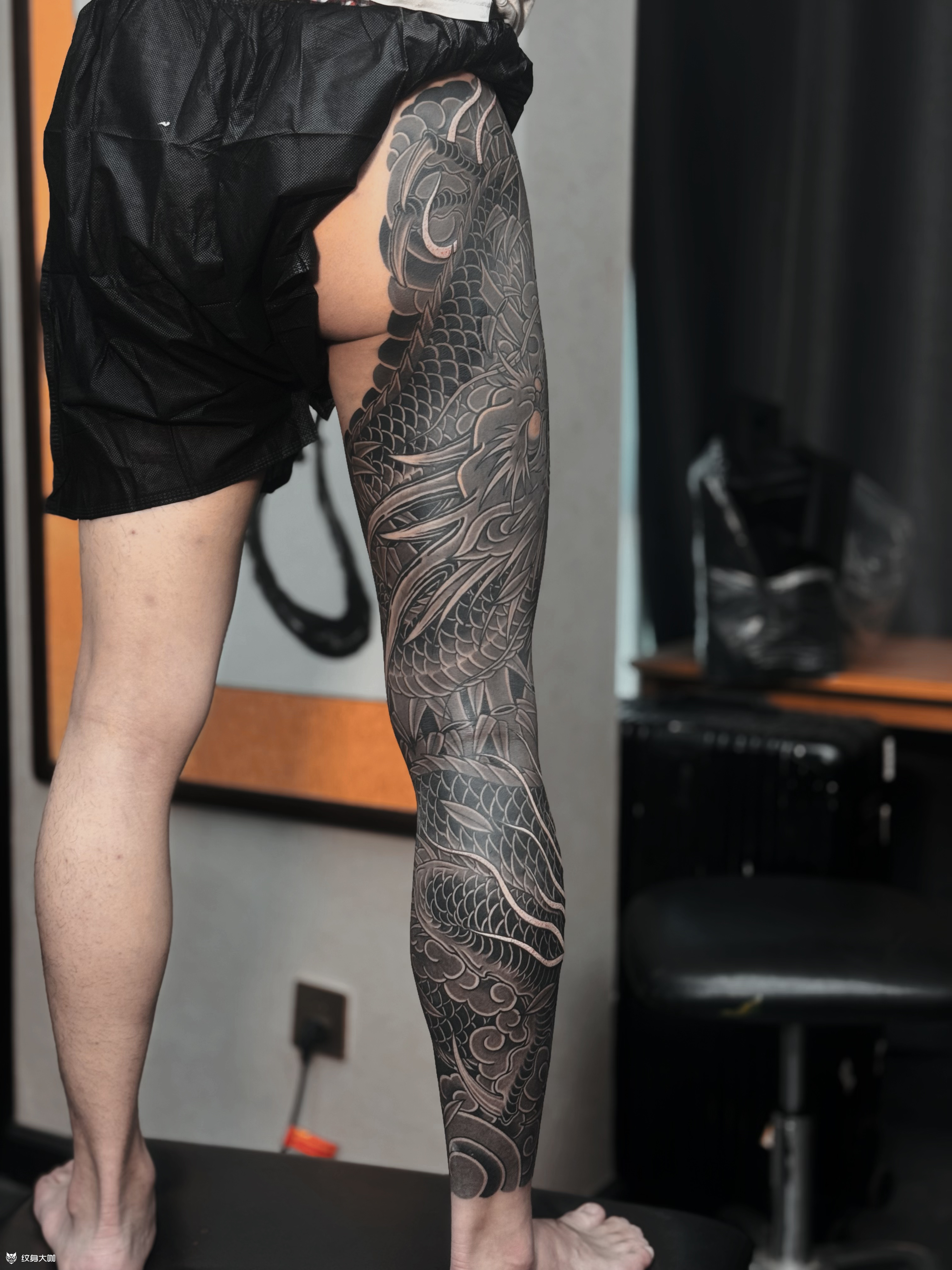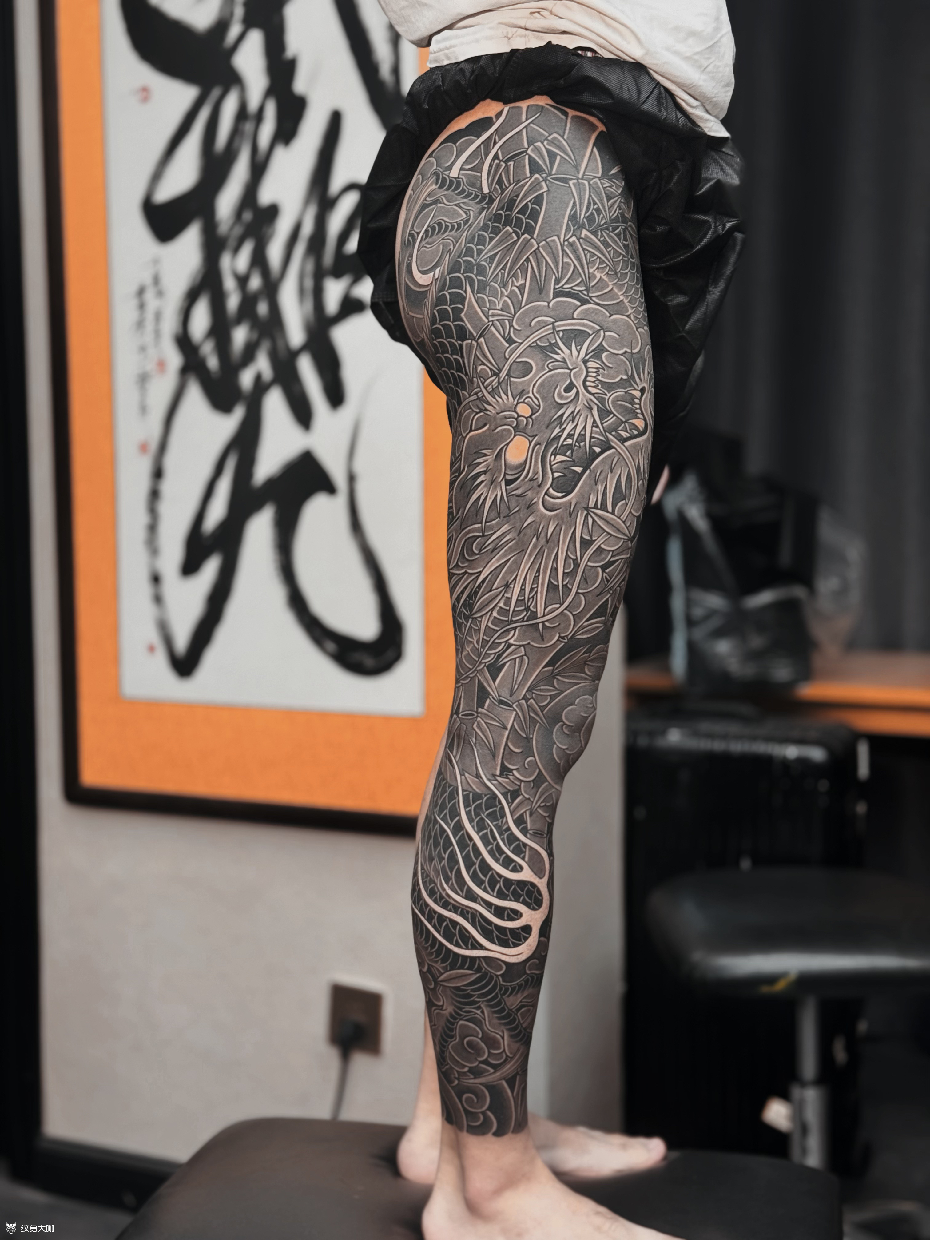 黑灰龙与墨竹花腿完🐲 感谢香港帅哥对我们的信任🙏 选择我们为他定制属于他的纯黑灰花腿🐉 帅哥想做龙与竹子那我们就设计手稿✍️ 设计出来帅哥非常满意🤣 就直接约时间过来做了😎 耗时58/h完工🕐 你们喜欢我们的设计与构图吗⁉️ 喜欢可以定制类似的哟😉 加V:wrcq02