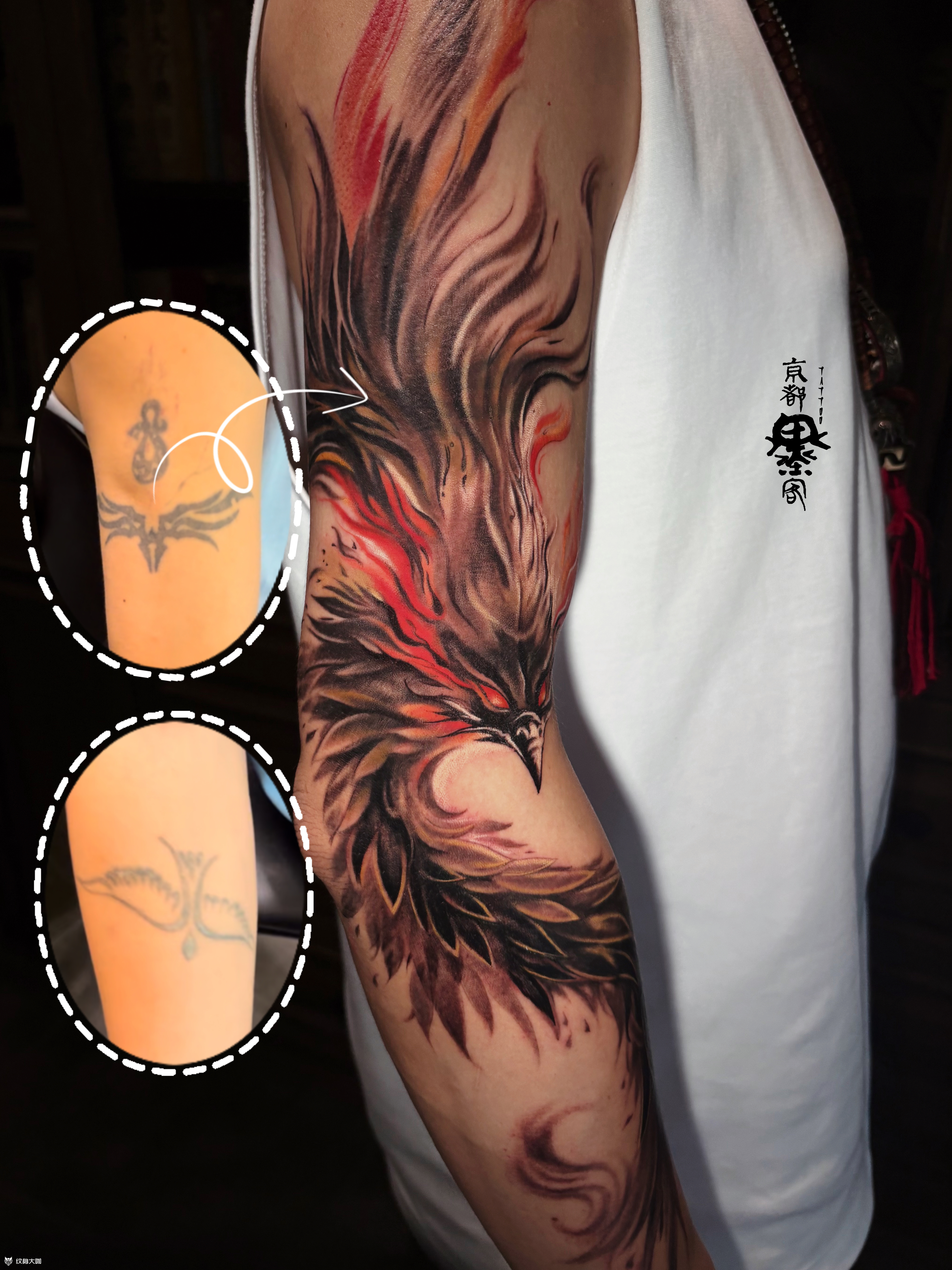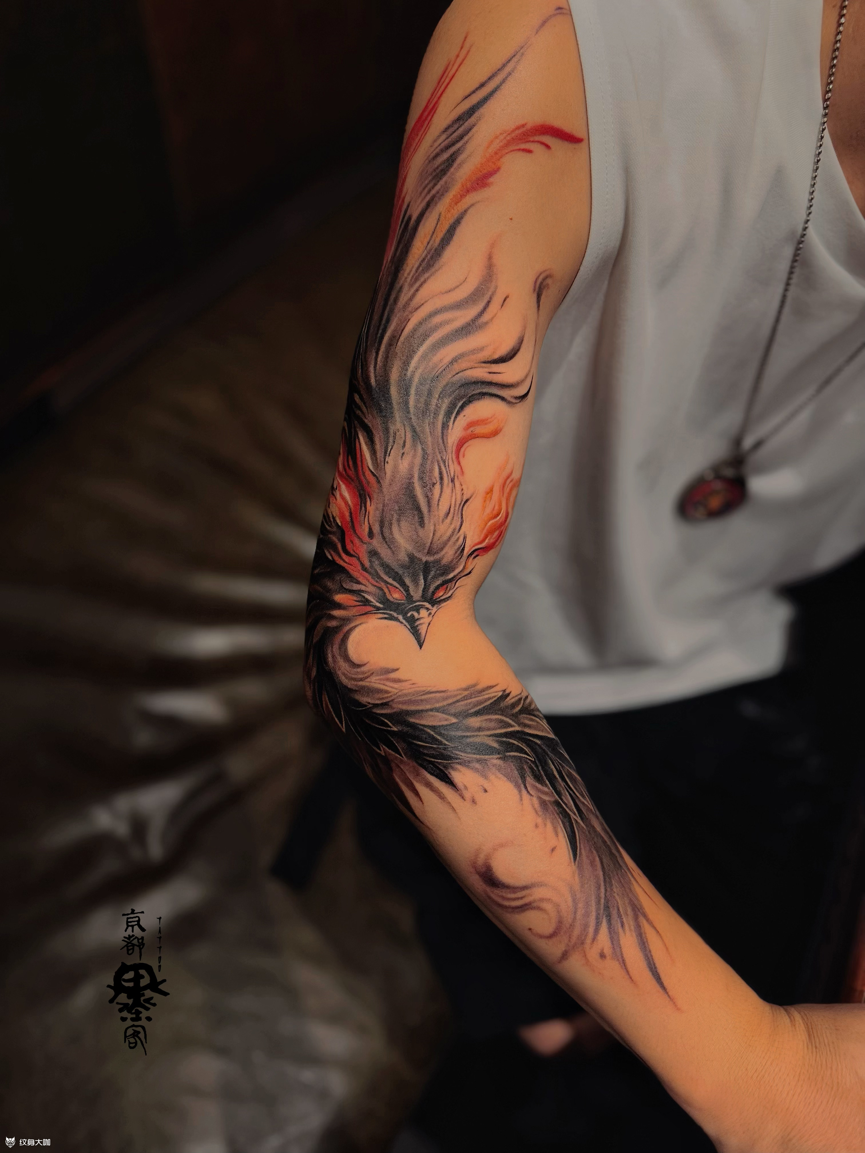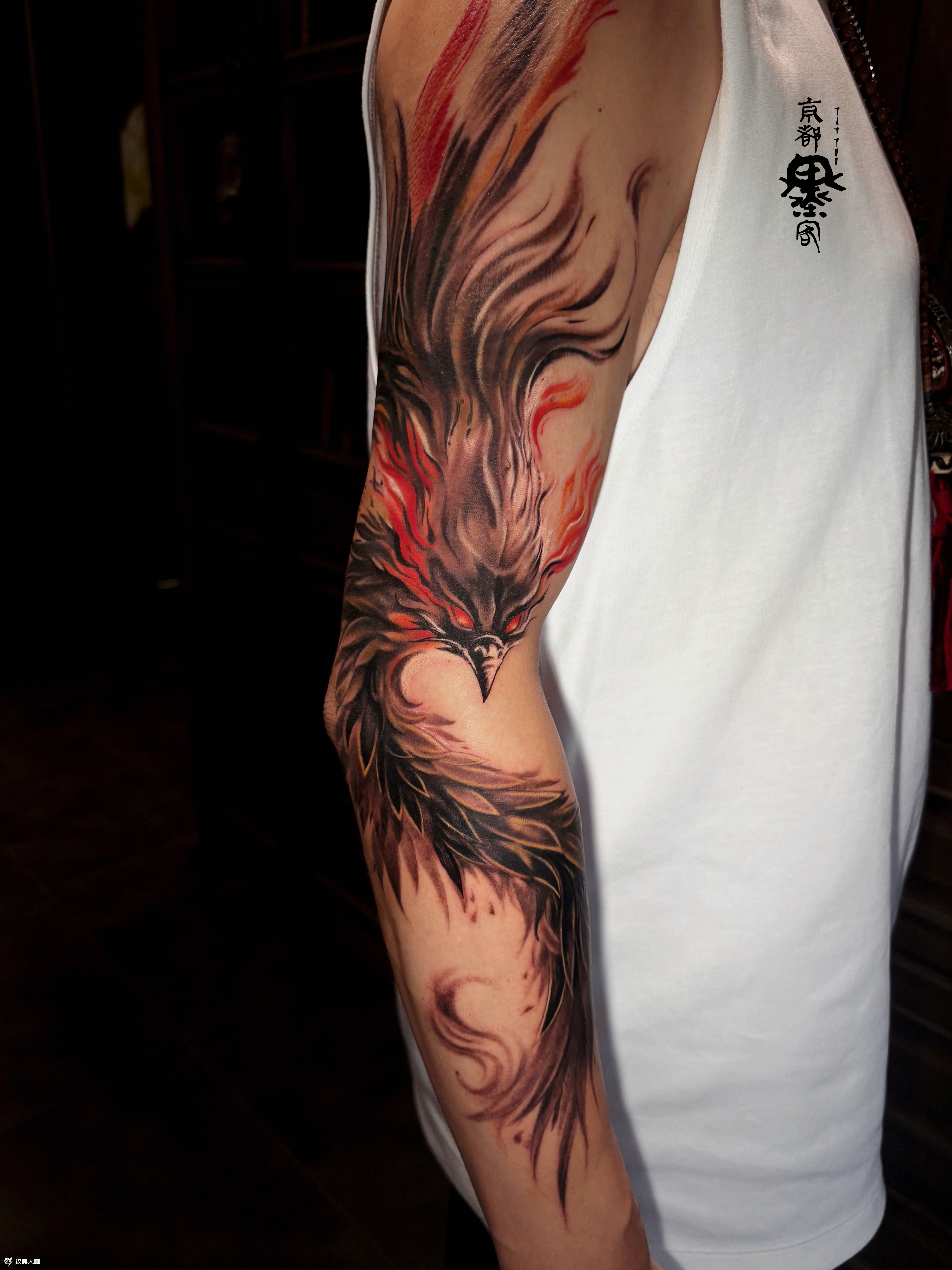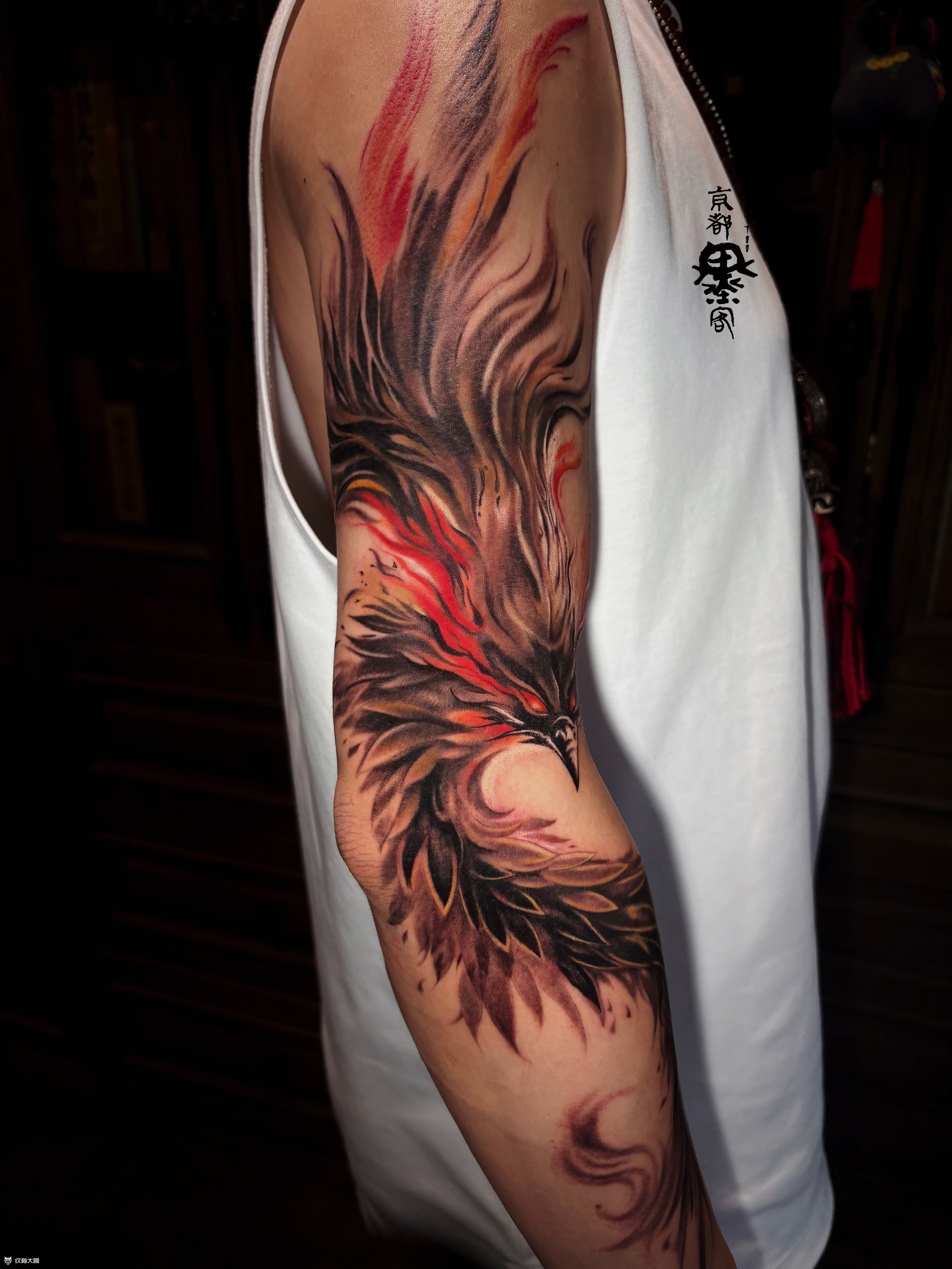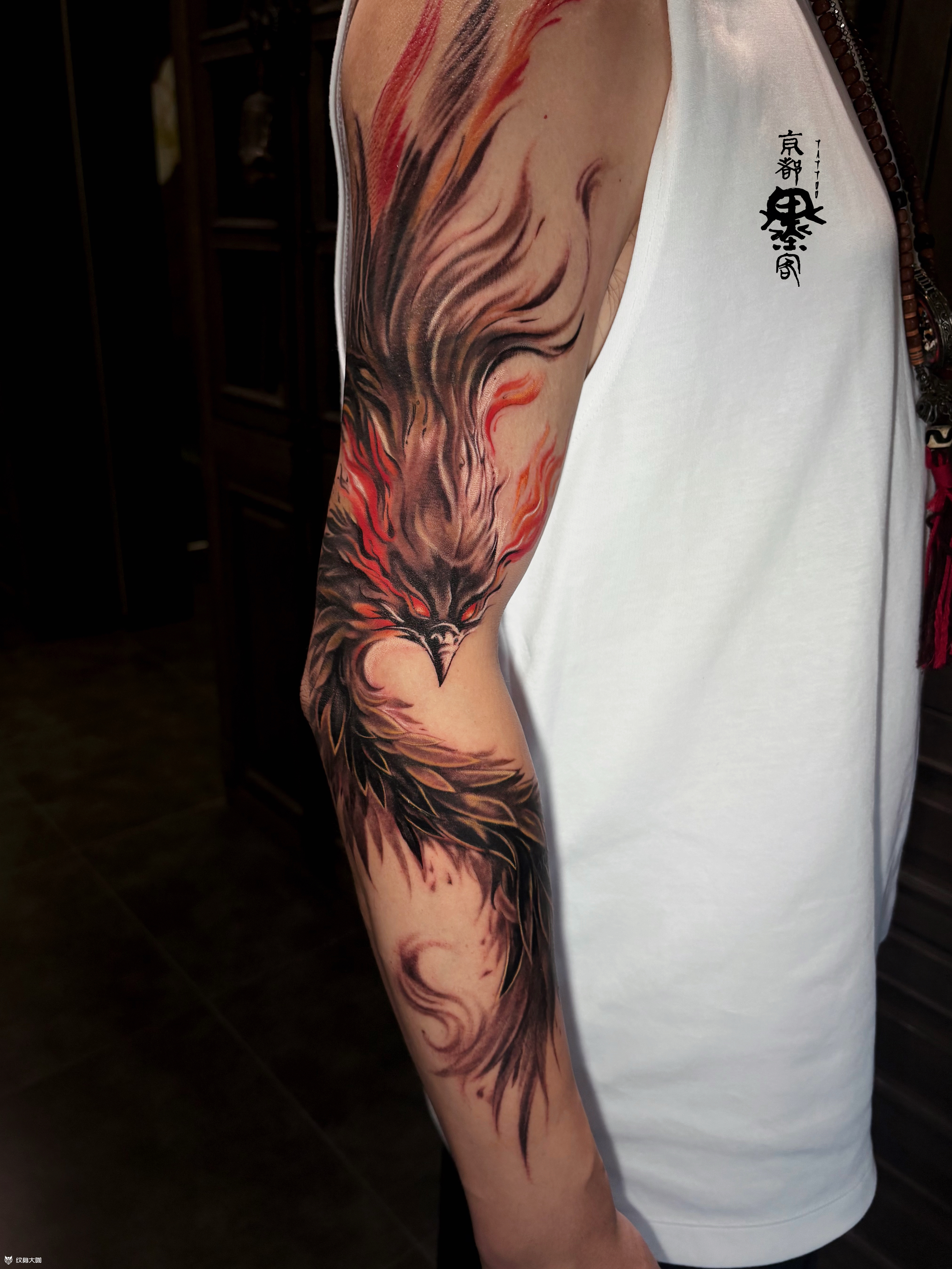 不死鸟纹身 每一次振翅,都是向死而生的宣言。火焰淬炼骨血,伤痛铸就不朽,你的灵魂,从来浴火而生。 #京都墨客刺青 #不死乌纹身 #重生即永恒
