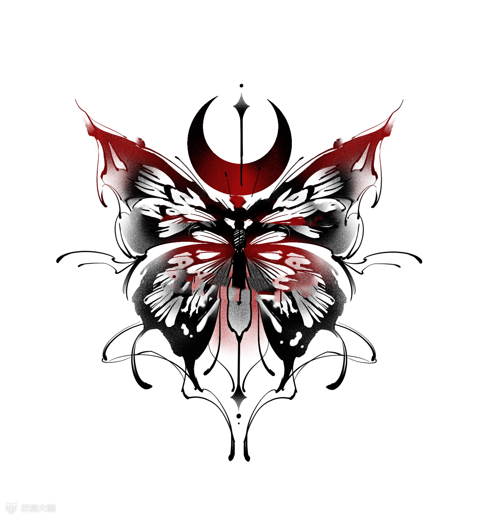 蝴蝶遮盖设计 客人可能因为看腻了的关系吧,十分急于将这个十字架给改变,要求的女生的要求其实都差不多,都是希望,不要变得太大,然后客户十分喜欢黑红系列的蝴蝶,我考虑到大小的消息,想用飞蛾当做主体,但是无奈客户不喜欢,我只能在尽可能的小的情况下,去进行改变,想纹身想设计就找我吧。