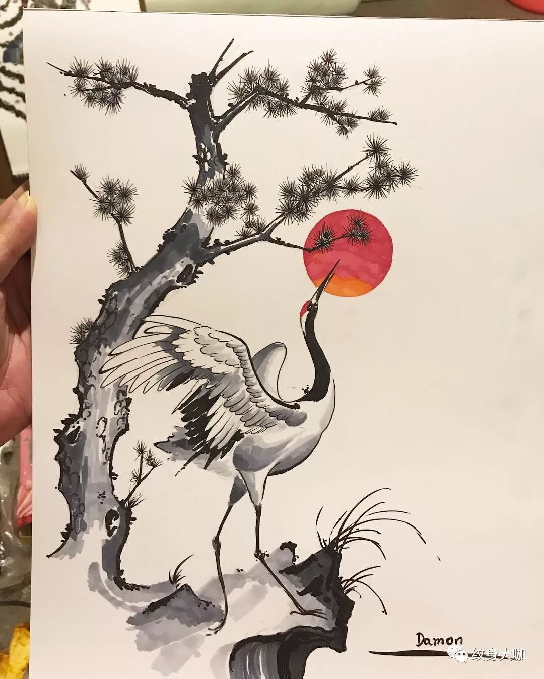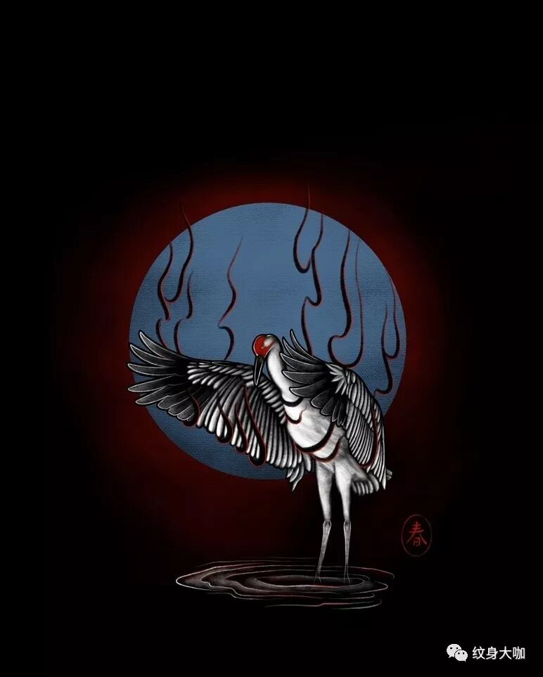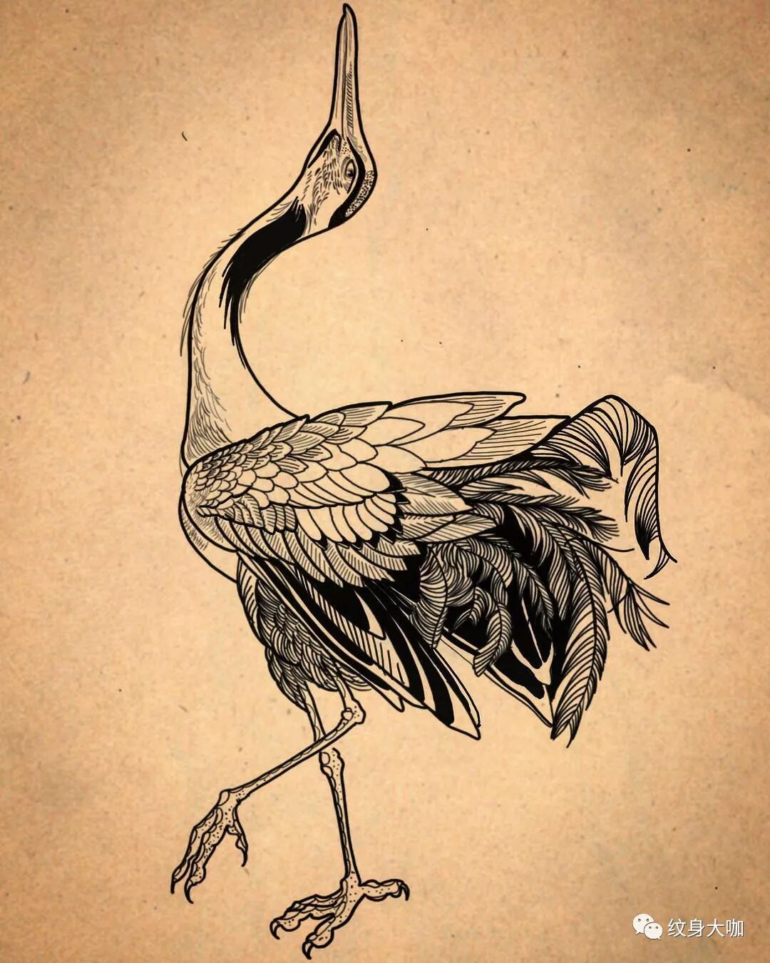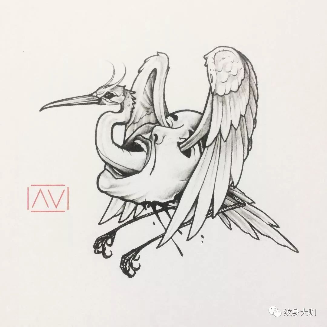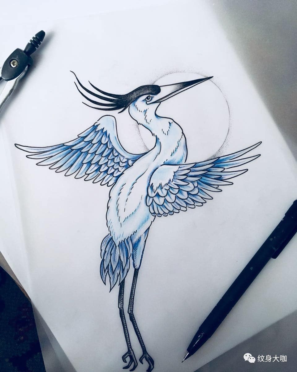 纹身手稿素材第504期:鹤