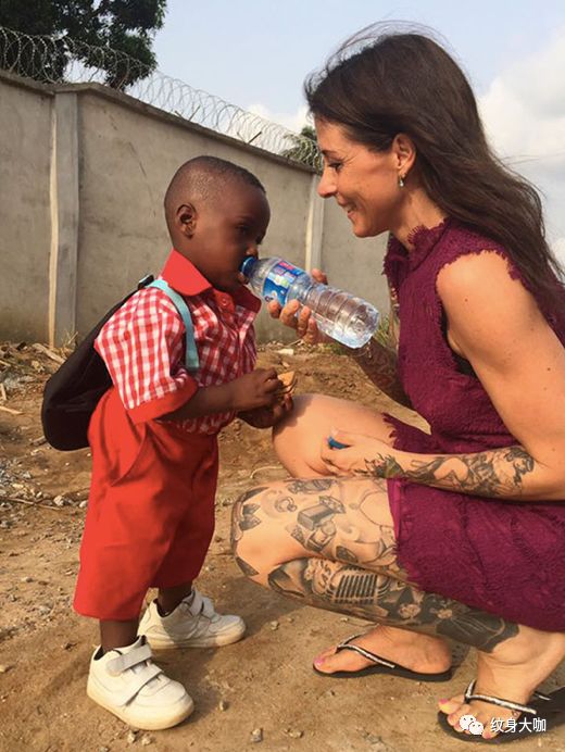 这个有着花臂的母亲在不断的用自己的