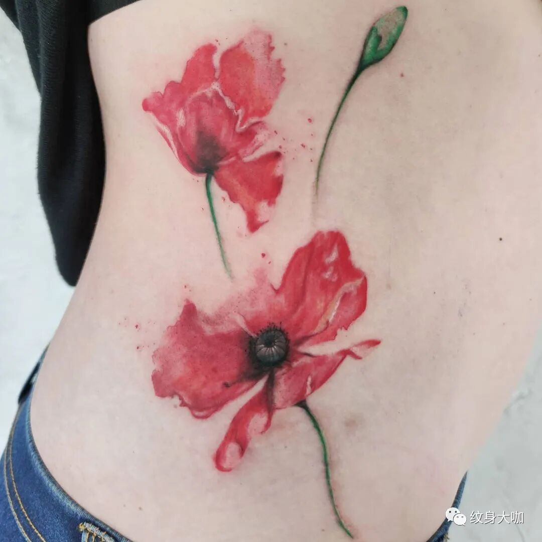 我一朋友在侧腰处纹了一朵向日葵。